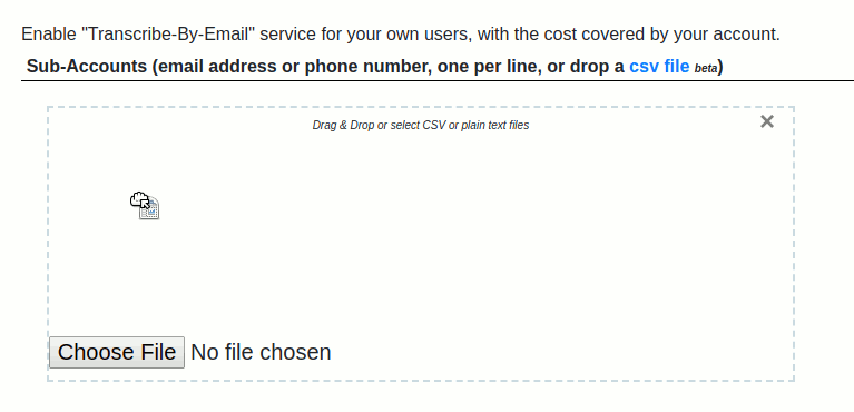 Easy Drag-Drop: Simply drag-drop your CSV file to Sub-Accounts page.